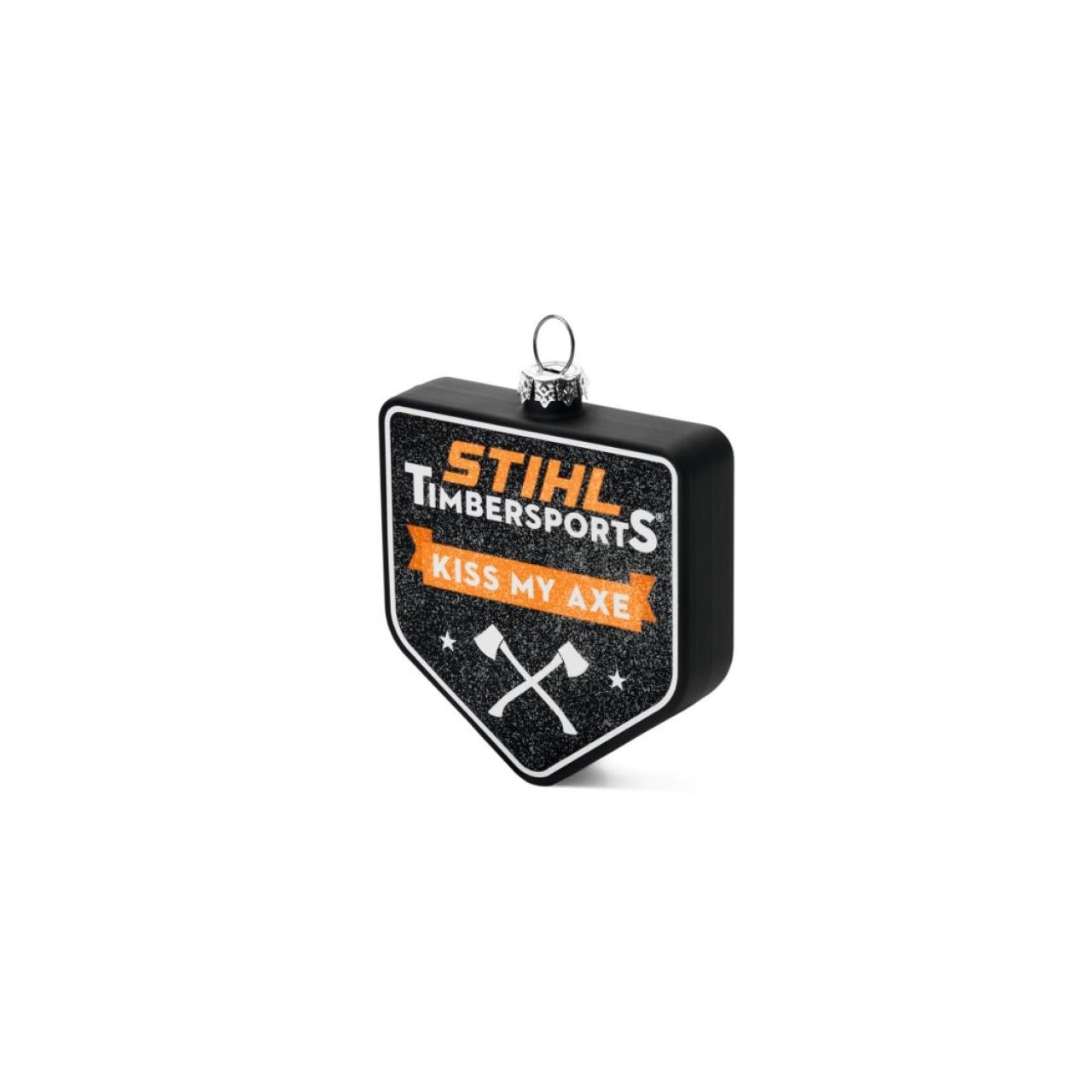 Für Super-Fans: Die Weihnachtskugel TIMBERSPORTS ® in der Sonderedi-tion „Kiss My Axe“. Wer diese Kugel an den Baum hängt, setzt ein Statement. Die Weihnachtskugel ist schwarz mit aufgedrucktem Logo. Schön ist dieser Baumschmuck auch in Kombination mit den anderen STIHL Weihnachtskugeln.