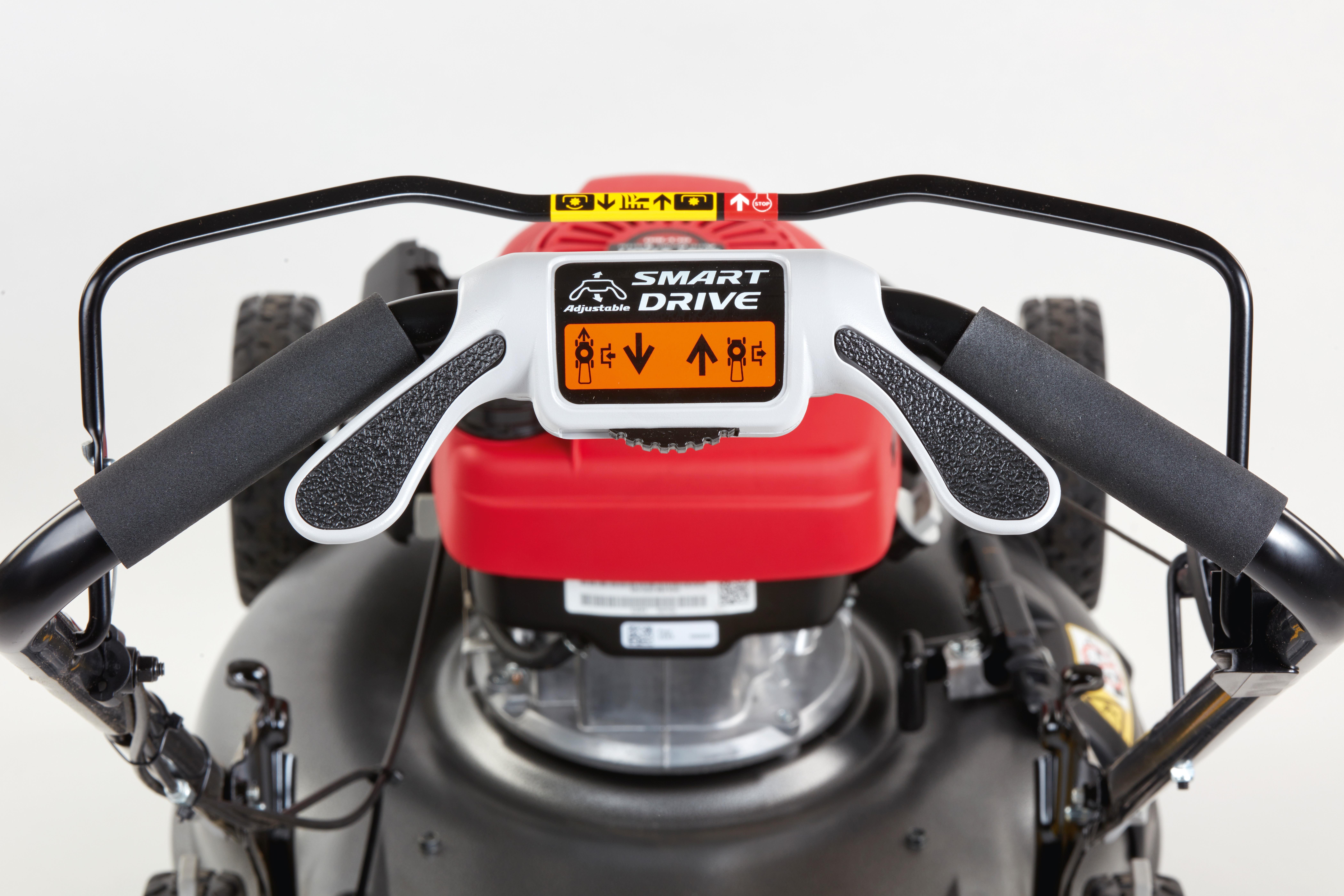 SMART Drive®: Der ergonomische Schmetterlingshebel SMART Drive® bietet eine stufenlose Geschwindigkeitsregelung für präzises und flexibles Steuern an schwierigen Stellen, wie z. B. Blumenbeeten und Bäumen.