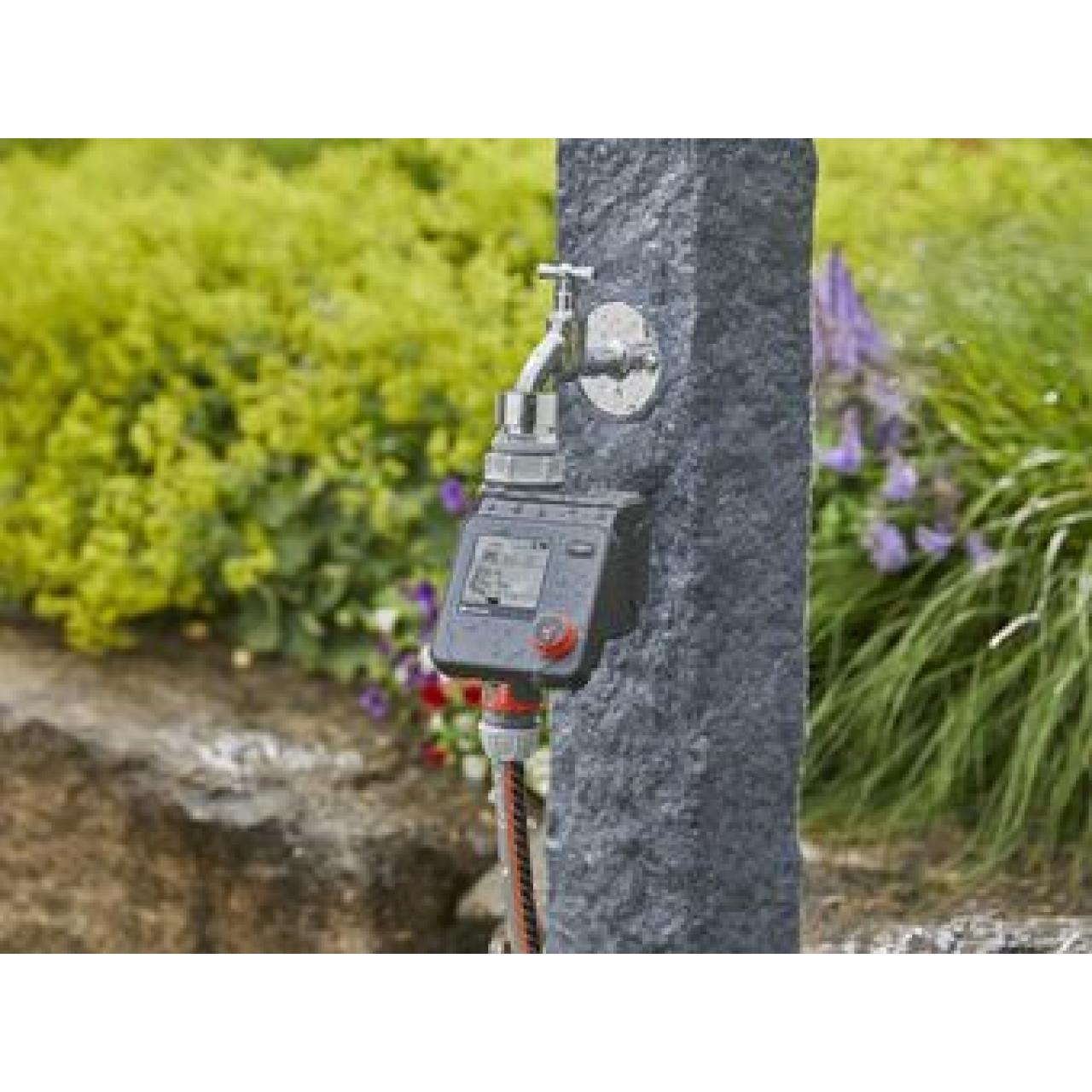 Mit der GARDENA Bewässerungssteuerung Select lässt sich die Bewässerung flexibel und individuell planen. Für die Bewässerung lassen sich drei unterschiedliche und voneinander unabhängige Zeitpläne erstellen. Einstellbar sind Start, Dauer und Wochentage der Bewässerung. Die Steuerung ist batteriebetrieben, wird direkt an den Wasserhahn angeschlossen und lässt sich leicht durch nur einen Dreh- und Drückschalter zur Auswahl der Daten und zur Bestätigung bedienen. Ein gut lesbares LC-Display zeigt alle Einstellungen auf einen Blick an. ''Water Now'' Funktion: Soll die Bewässerung einmal sofort gestartet werden, lässt sich diese manuell aktivieren, ohne das Gerät vom Wasserhahn zu entfernen oder Einstellungen zu verändern. Die Bewässerungssteuerung funktioniert durch die ''Safe Stop'' Technologie immer zuverlässig: Ist der Energiestand der Batterie zu gering, um einen Bewässerungsvorgang komplett zu steuern, wird er gar nicht erst gestartet. Die Batterieanzeige im Display weist rechtzeitig darauf hin, wenn die Batterie ausgetauscht werden muss. Die wetterbeständige Bedieneinheit ist abnehmbar. Der Einsatz in Kombination mit einem GARDENA Bodenfeuchtesensor ist möglich.GARDENA gewährleistet höchste Qualität durch die Auszeichnung ''Made in Germany''. Dieses Produkt garantiert für eine effiziente Bewässerung, denn jeder Tropfen zählt. .